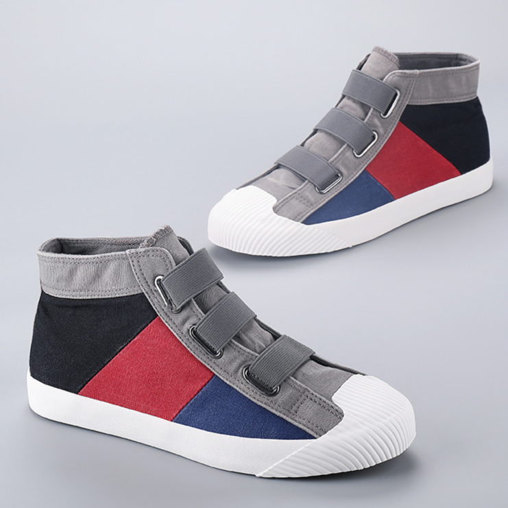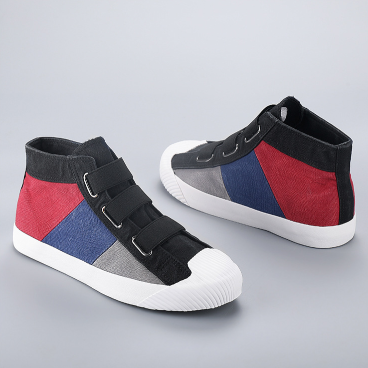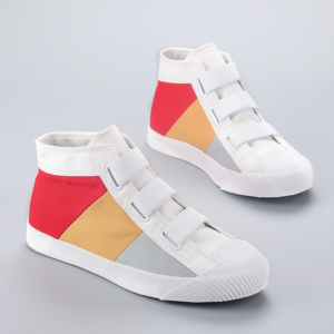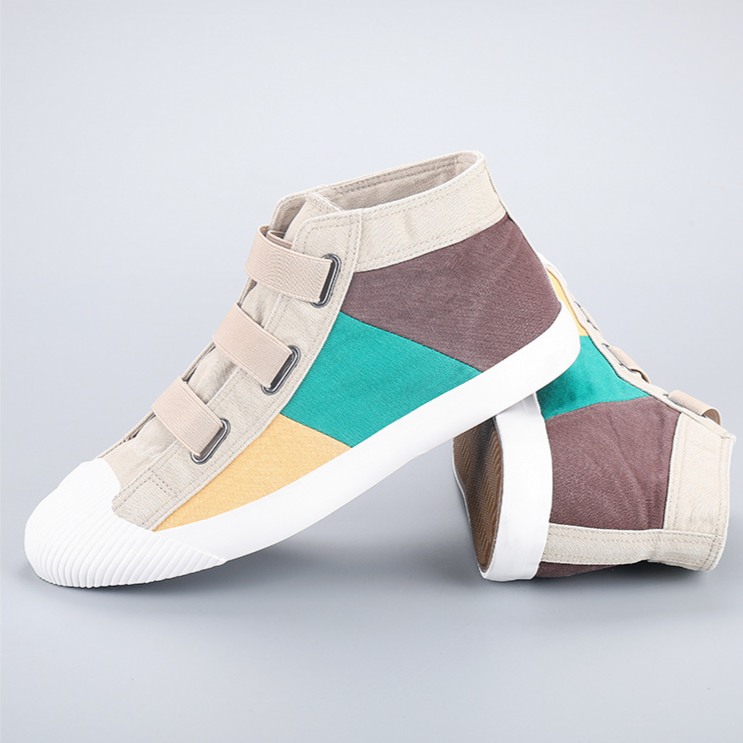 These sneakers combine bold, colorblocked panels with a structured retro look, drawing from the graphic clarity of Bauhaus-era design. Crafted from durable woven canvas and finished with triple velcro straps, they offer easy wear and standout style—no matter what you pair them with.