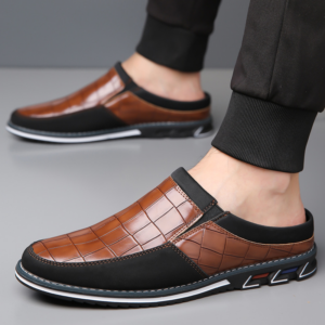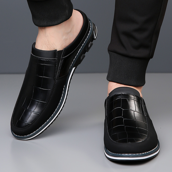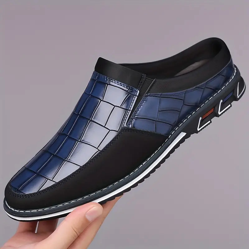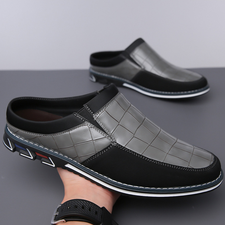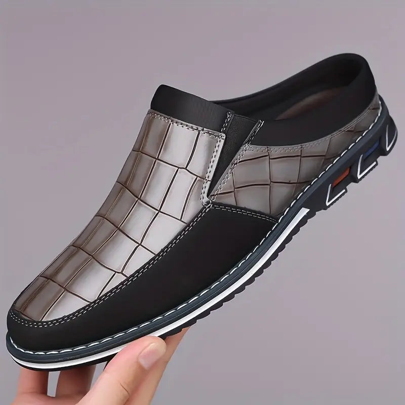 Crafted from genuine embossed leather, these mules bring a sculpted grid design together with sleek contrasting trim for a polished finish. The soft interior lining and lightweight sole deliver flexible movement that cradles you in comfort.