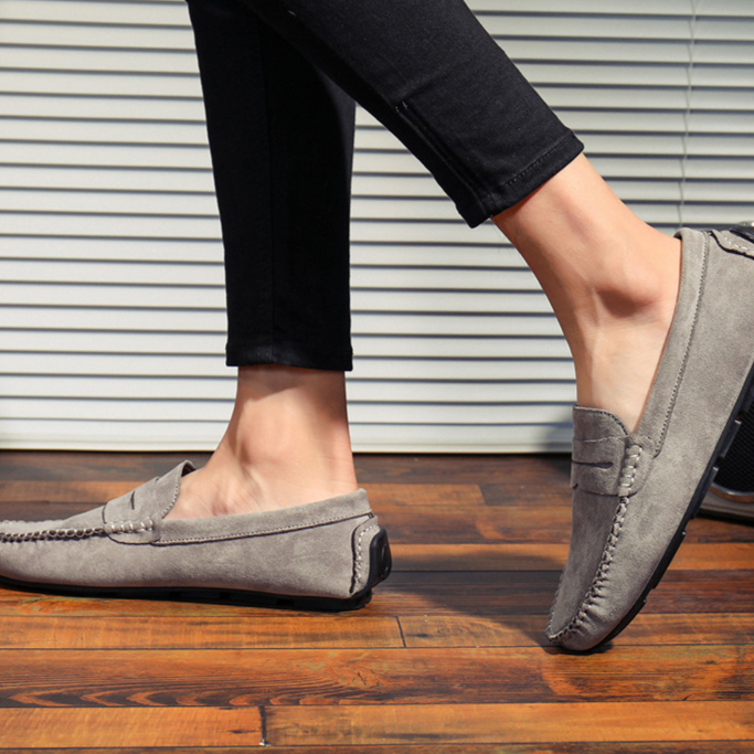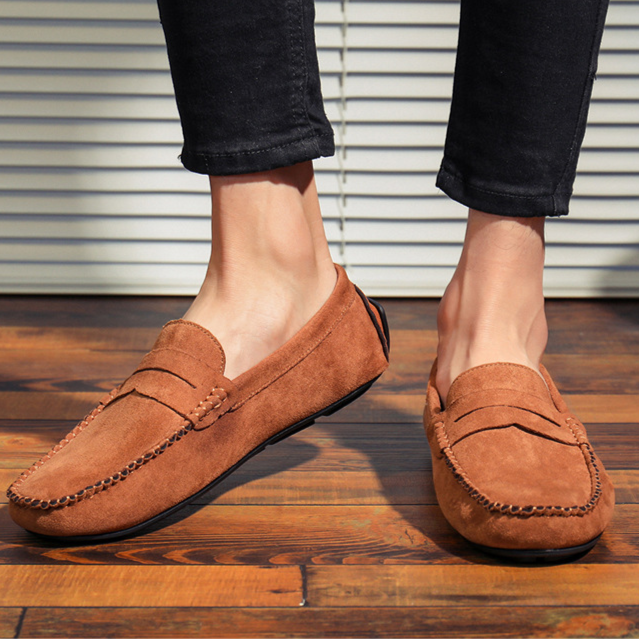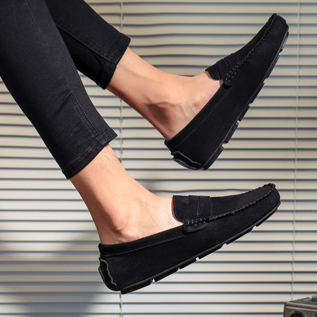 Crafted from premium suede, these penny loafers combine comfort and versatility with a cushioned footbed and flexible sole. The reinforced driving heel offers added stability whether you’re navigating busy streets or cruising behind the wheel.