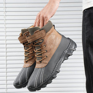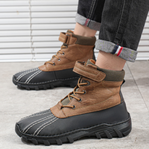 Crafted with a rugged blend of genuine leather and reinforced nylon, these boots are built for rough trails. A thick rubber outsole grips even the slickest ground, while the water-resistant upper shields against the elements.
