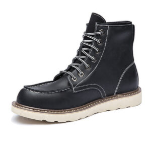 Discover the strength of the finest genuine leather with these rugged boots, designed for both durability and style. They feature a distinctive moc toe and contrast stitching for a tough yet comfortable fit that lasts.