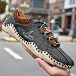 Experience all-day comfort with these genuine leather loafers boasting sophisticated lacing and detailed stitching. They offer a cushioned insole and a textured rubber sole for excellent grip and stability, perfect for casual outings to semi-formal events.