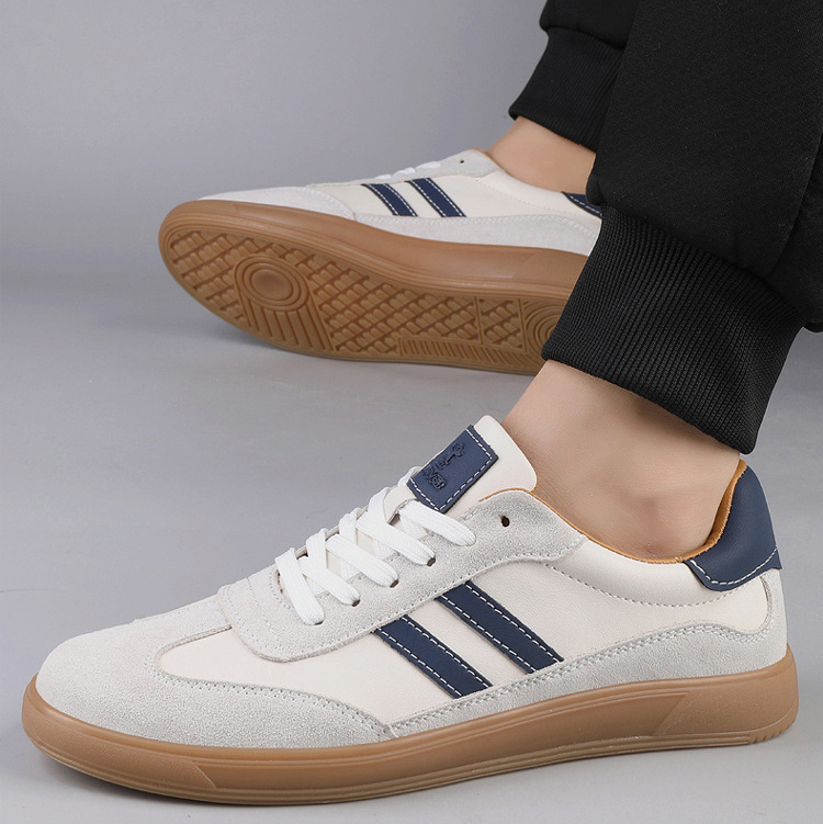 Smooth leather meets textured suede in a retro-sport sneaker built for everyday movement. Contrast side stripes add a classic ’80s courtside edge, while the cushioned soles keep each step comfortably supported.