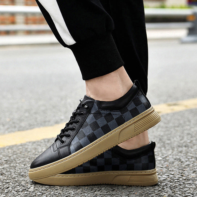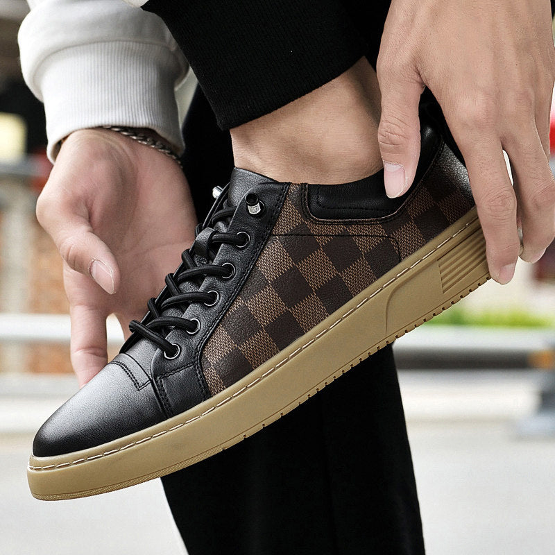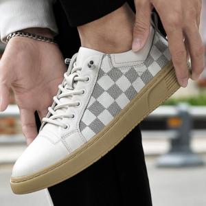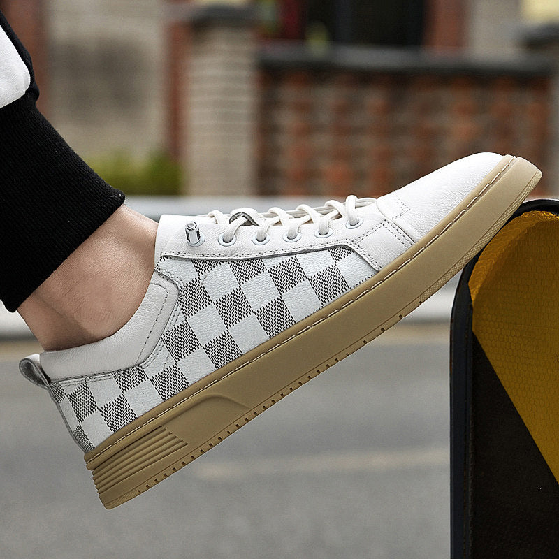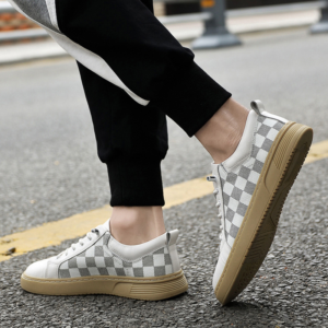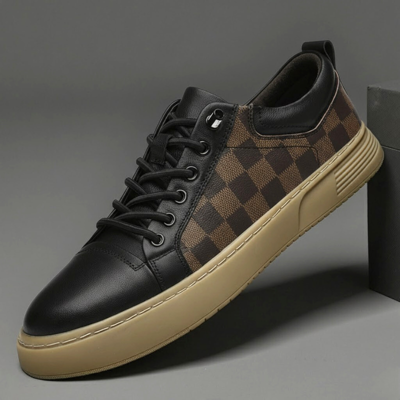 Crafted from genuine Italian leather with a checkered side panel, these sneakers deliver all-day comfort through a cushioned sole that supports every step. Designed for active city days, they move easily from streets to downtime.