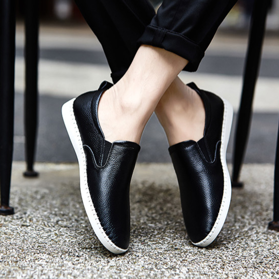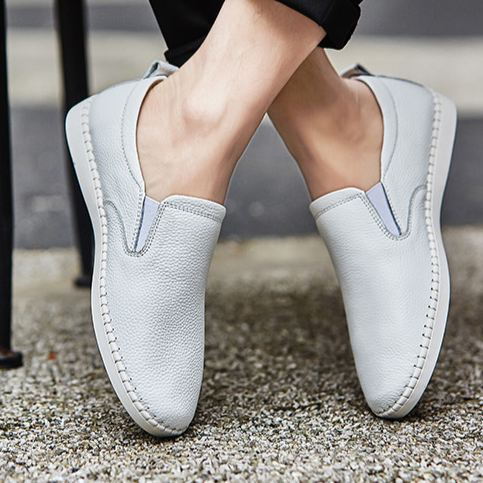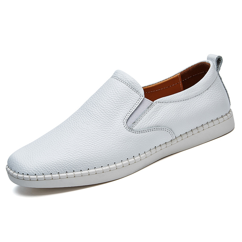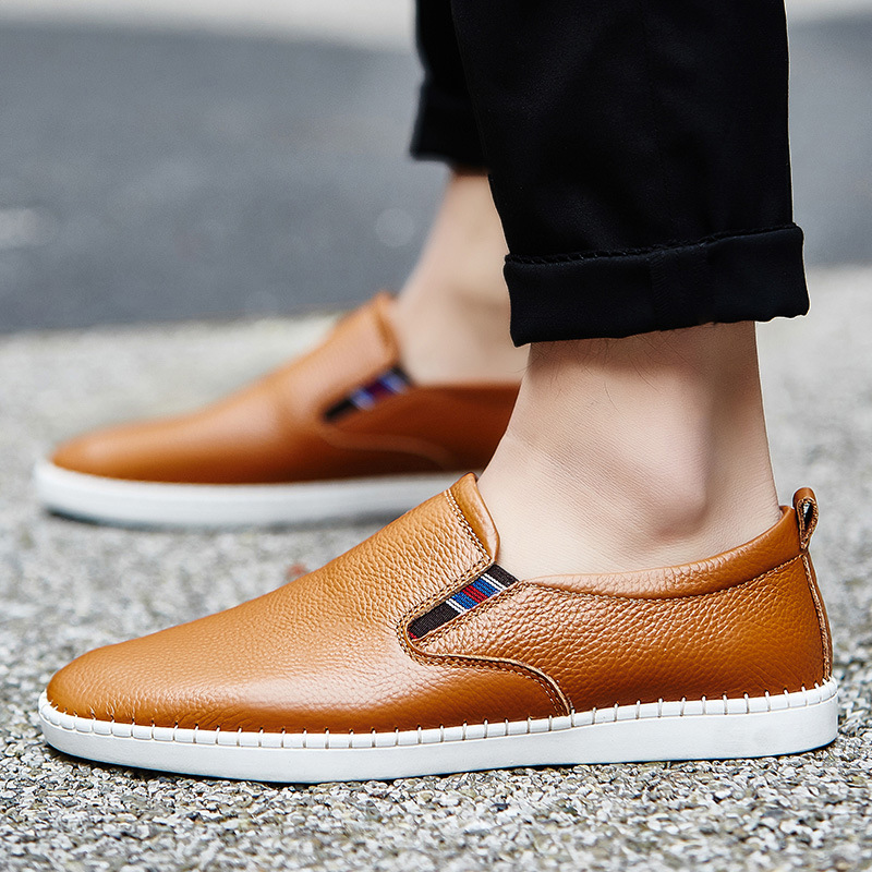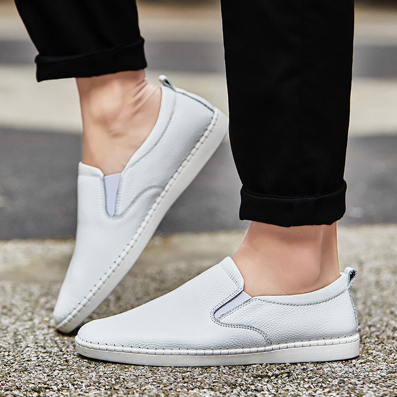 Crafted from genuine leather with a textured finish, these slip-on sneakers offer breathable comfort that lasts through long days while maintaining a polished look. The flexible rubber sole ensures a firm grip, making them your go-to from quick coffee runs to leisurely weekend strolls.