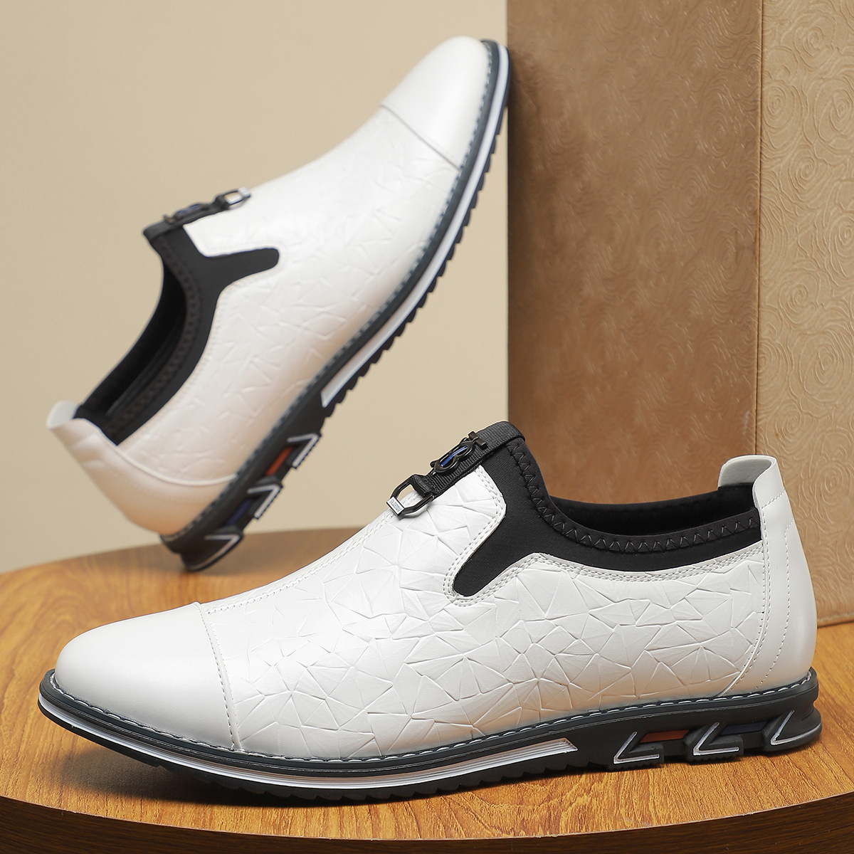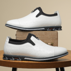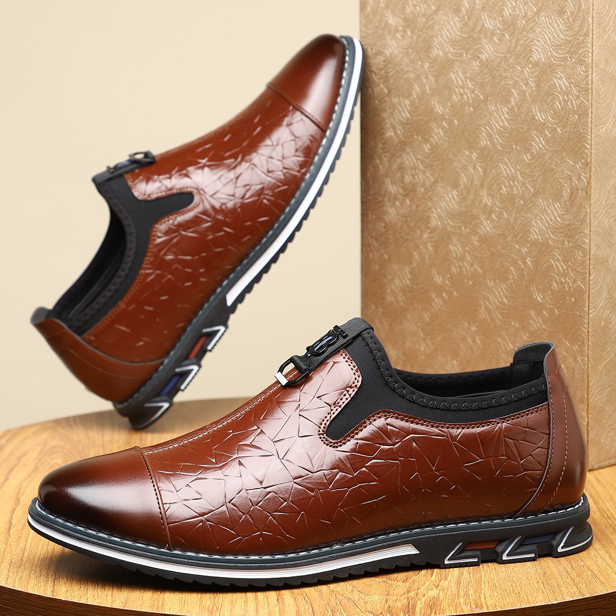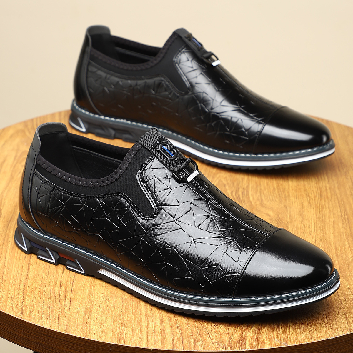 - Embossed leather upper