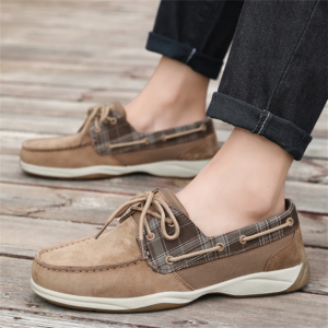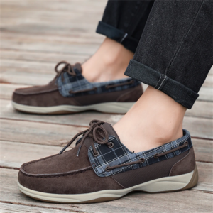 Crafted with premium suede and plaid canvas panels, these shoes deliver breathable comfort with grip that holds on wet and dry surfaces. The flexible lace-up design and cushioned base keep you steady and comfortable through long days on deck or around town.