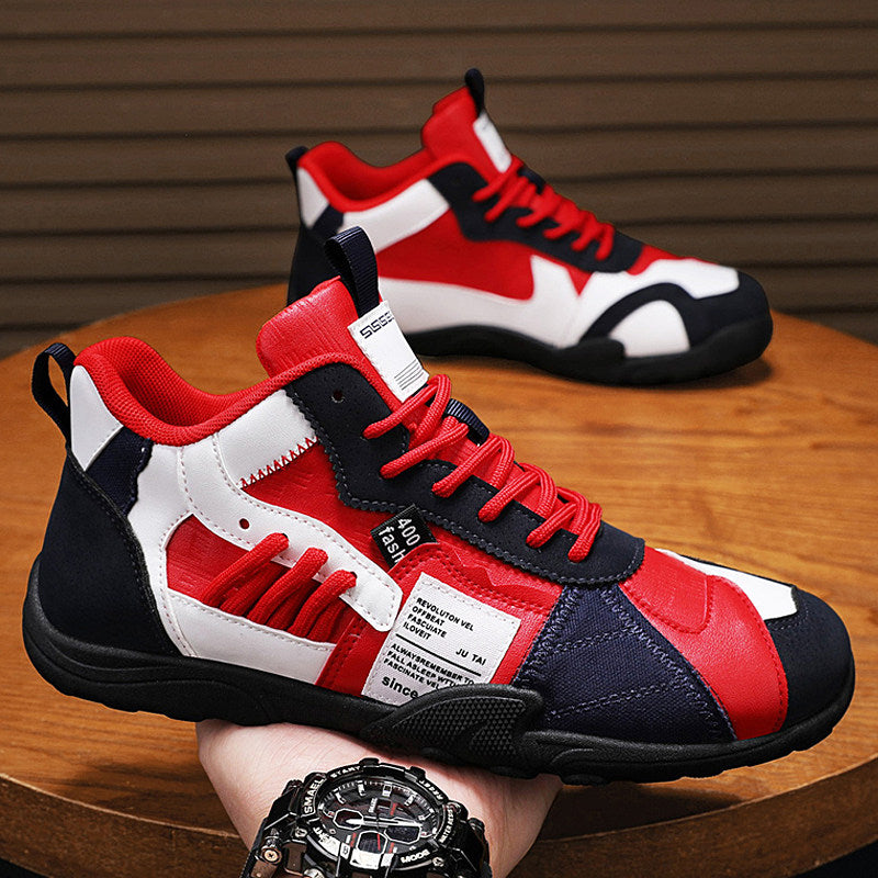 Engineered with a technical climbing-inspired aesthetic, these mixed-material sneakers combine mesh panels, suede overlays, and utility details for an adventurous urban look. The rugged construction channels outdoor exploration while delivering street-ready style built for city adventures.