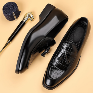 Polished, sleek, confident—these are the loafers that command attention with every stride. Crafted from genuine leather with a crocodile-textured vamp and classic tassel finish, they deliver a sharp, dress-ready look that stands out in any setting.