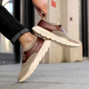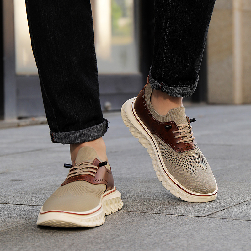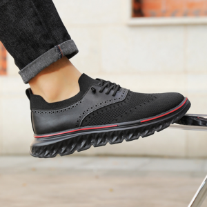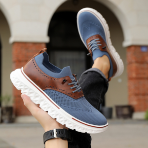 Crafted with our signature breathable mesh and genuine leather paneling, these sneakers blend flexible comfort with a polished edge. Finished with brogue detailing and a cushioned sole, they’re tailored for smooth movement that lasts all day.