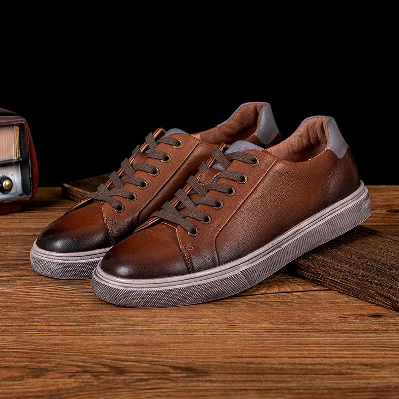 Put a little personality into your ensemble with the rugged charm of these distressed leather sneakers. Burnished edges, a smoky patina, and a broken-in sole bring raw, intentional edge to a silhouette that stays crisp and composed. Pair it with a basic white shirt for contrast that hits just right.
