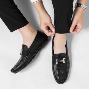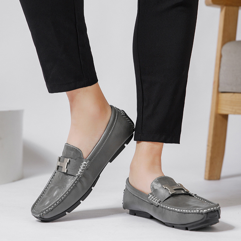 Crafted from genuine leather, these loafers offer lasting comfort and polished sophistication that improves with every wear. Signature metal accents enhance the sleek profile, while a cushioned insole ensures comfort throughout the day.