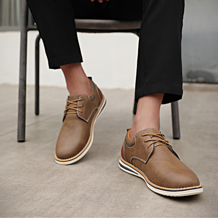 Supple genuine leather and a streamlined Derby silhouette meet a sneaker-inspired sole crafted for movement. With clean lines above and cushioned support below, it delivers refined style made for daily wear—no dress code required.