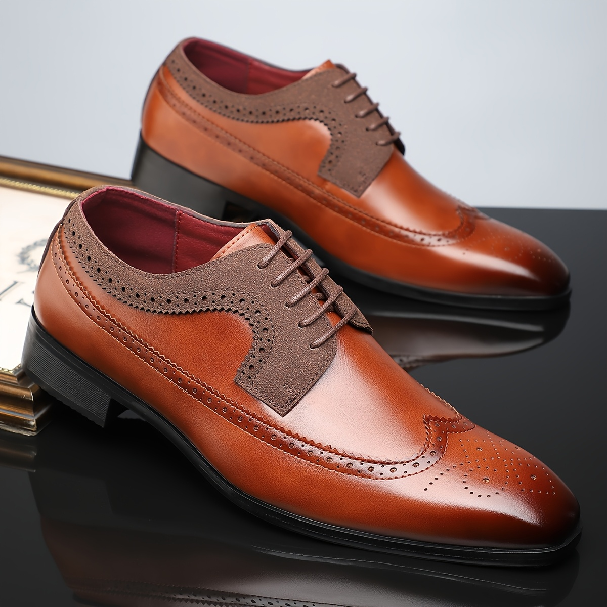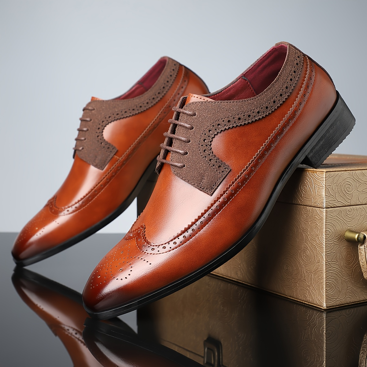 Crafted from genuine Italian leather, these dress shoes feature a refined suede panels for a striking two-tone design. The timeless brogue detailing and polished finish make them an impeccable choice for your most important moments, combining luxury with unparalleled comfort.