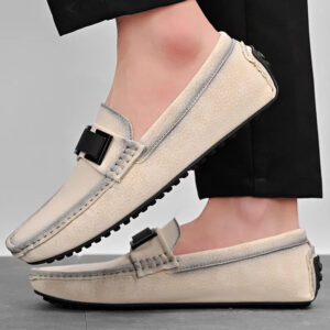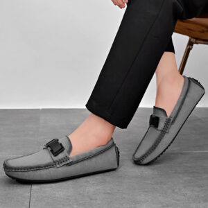 Crafted from the finest genuine leather, these loafers offer a luxurious feel with every step, and the cushioned insole provides unparalleled comfort throughout the day. The sleek metal buckle adds a touch of sophistication and class, setting them apart from traditional loafers.