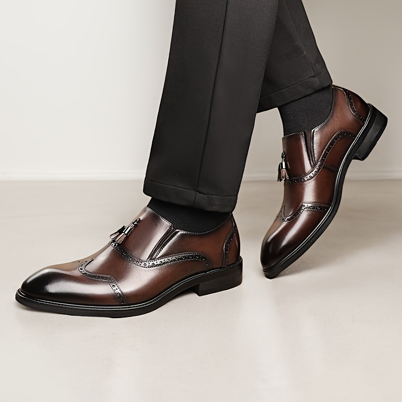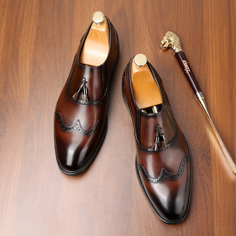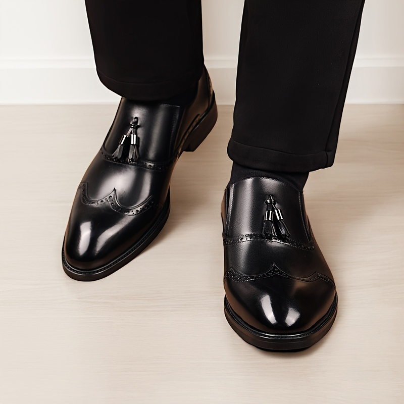 Crafted from genuine Italian leather, these tassel loafers deliver unmatched comfort with a that gets better with each wear. The cushioned interior and flexible construction create a perfect fit for long days at the office or weekend outings.