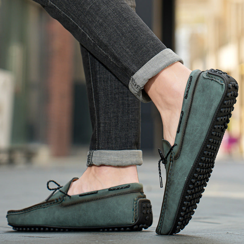 Experience all-day comfort with these genuine leather loafers boasting sophisticated lacing and detailed stitching. They offer a cushioned insole and a textured rubber sole for excellent grip and stability, perfect for casual outings to semi-formal events.