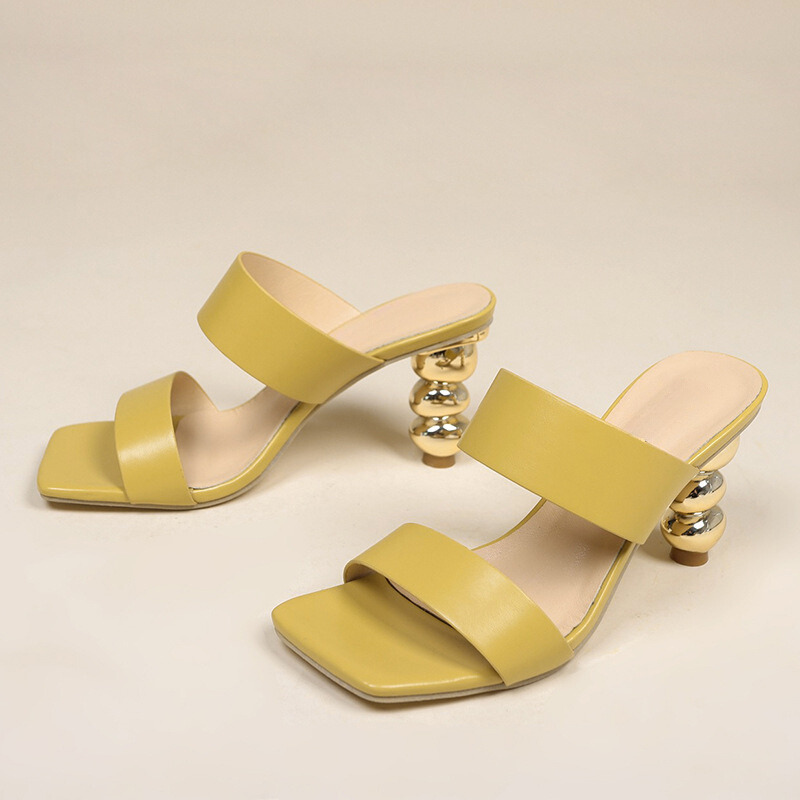 Featuring a stunning gold-tone polished serenity stone heel and a sleek, smooth leather upper. These elegant heels combine a chic square toe opening with a comfortable arch and supportive ankle strap for all-day wear.