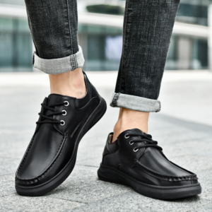 Crafted from genuine leather that feels as good as it looks, the shoes feature a modern design paired with meticulous stitching for a refined look. The cushioned, rubber sole provides flexibility and comfort, perfect for transitioning from casual to office settings.