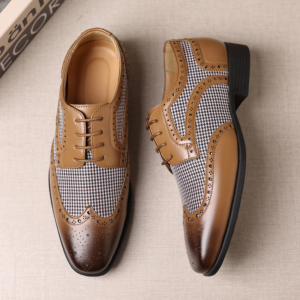 Crafted from genuine leather with a bold houndstooth pattern, these dress shoes combine a sleek profile with wearable comfort. The breathable lining and supportive heel promote a smooth roll through each stride, keeping each step light yet grounded.