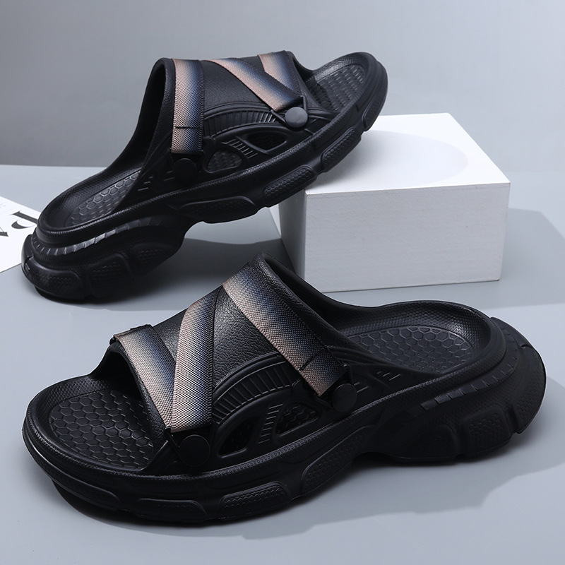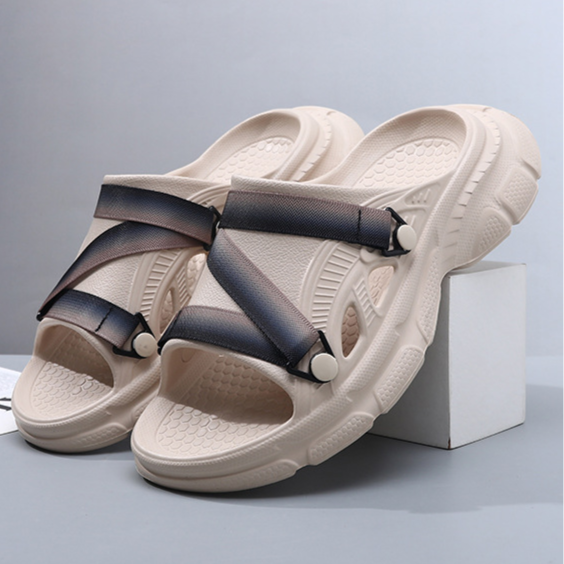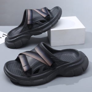 Merging the cushioned ease of Crocs™ with the rugged design of Teva®-style outdoor sandals, these slip-ons redefine off-duty performance. Thick sculpted soles and layered cross-straps give them an edge that feels as street-ready as it is trail-inspired — perfect for those who blur the line between lounge and motion.
