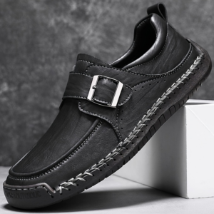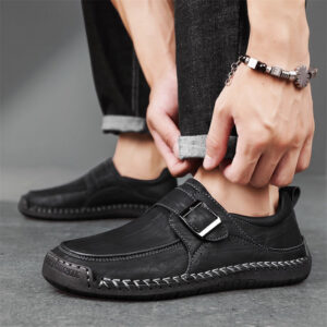 Crafted from genuine leather, these shoes are built for comfort with a supportive cushioned sole. Finished with hand-detailed stitching and a bold buckle, they’re tailored for everyday wear.